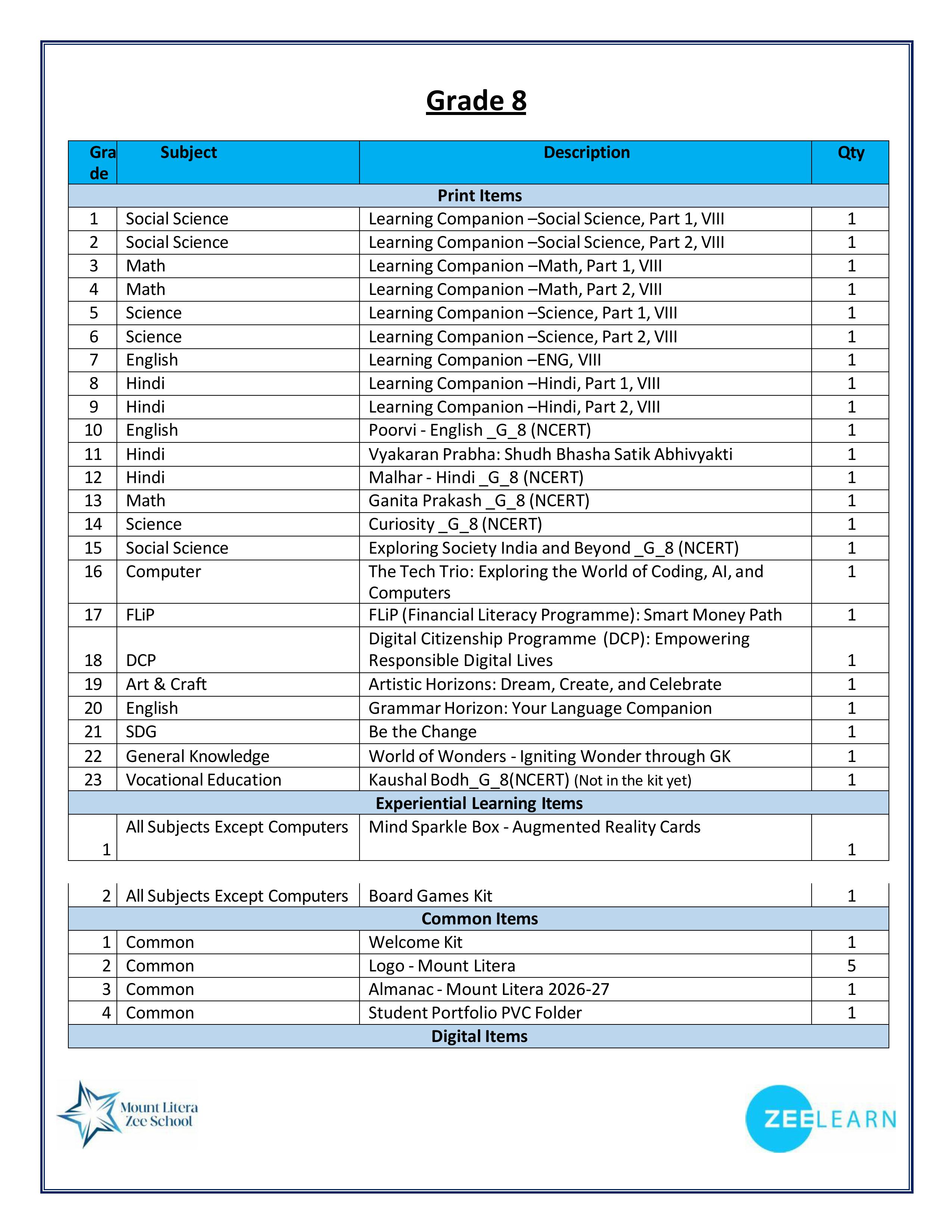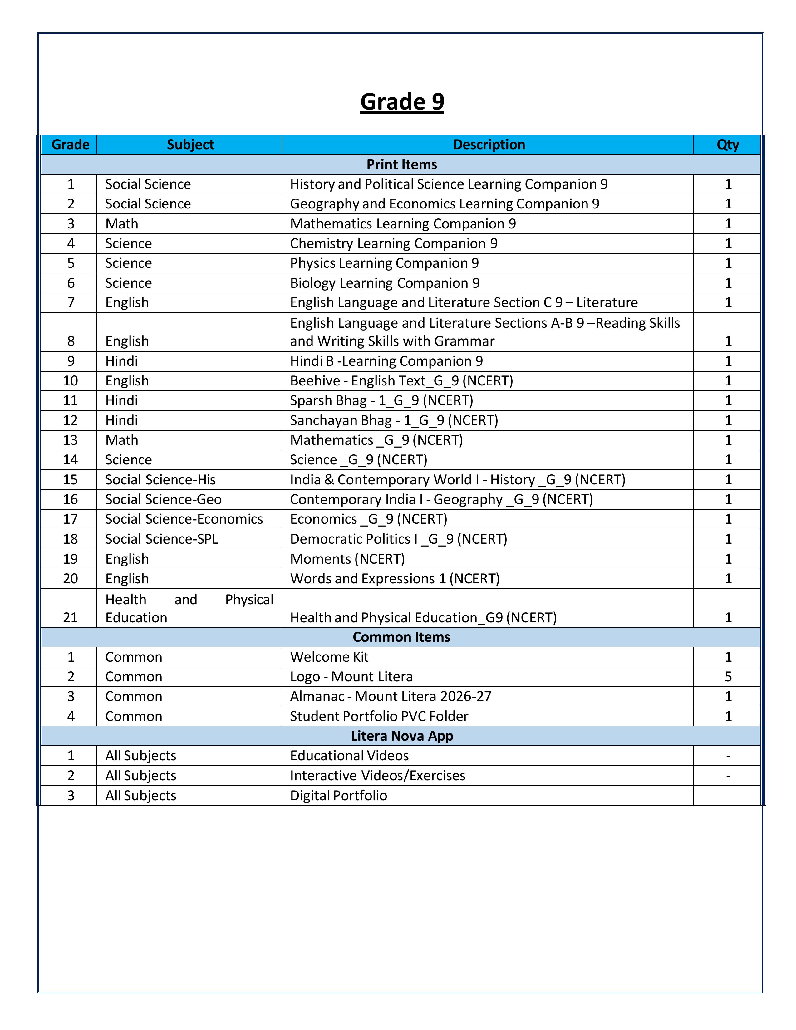 | 8 | BOOK LIST NURSERY TO XII | View Document |