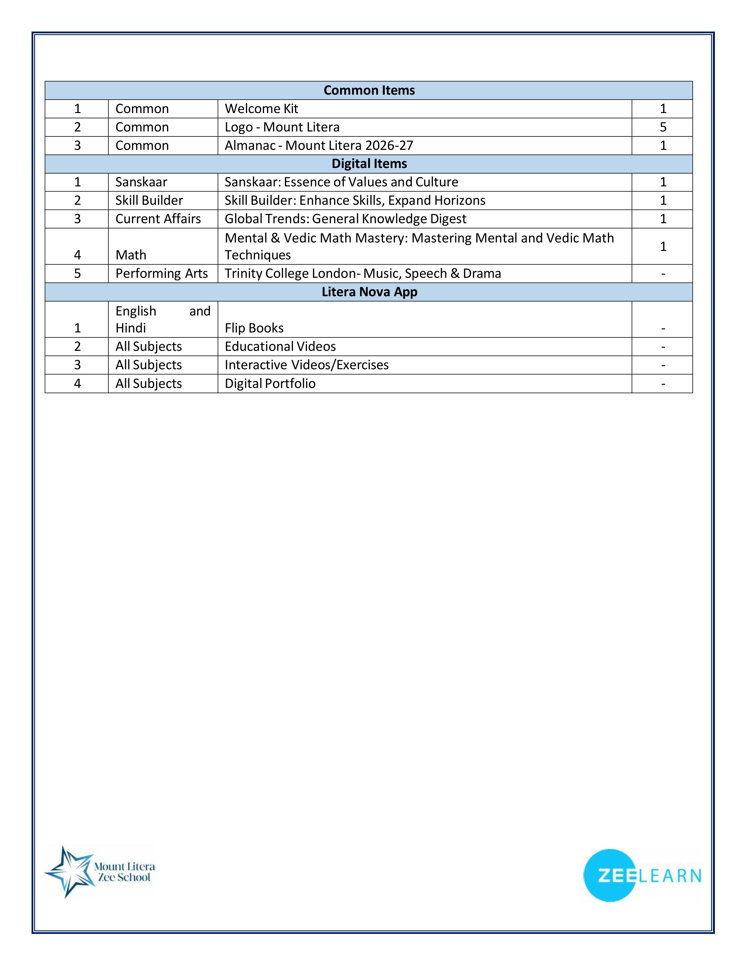 | 6 | School Email ID | mlzs.gwalior@mountlitera.com |